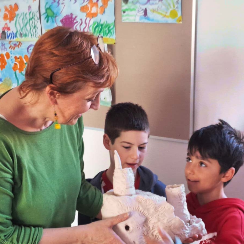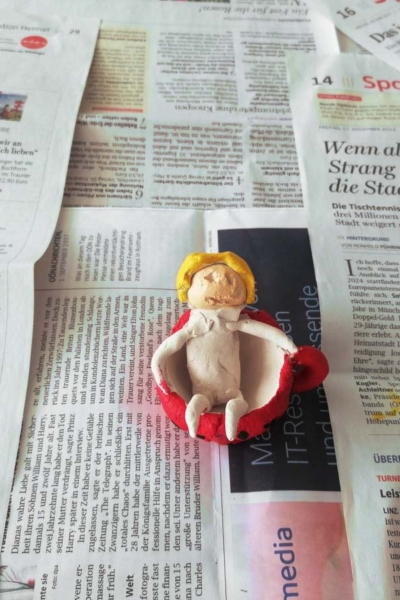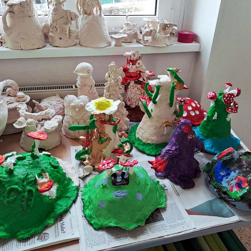Nach dem Brennen der Figuren müssen Veränderungen akzeptiert und angenommen werden: Manchmal brechen Teile- sie finden eine neue Funktion, Skulpturen verändern sich.
