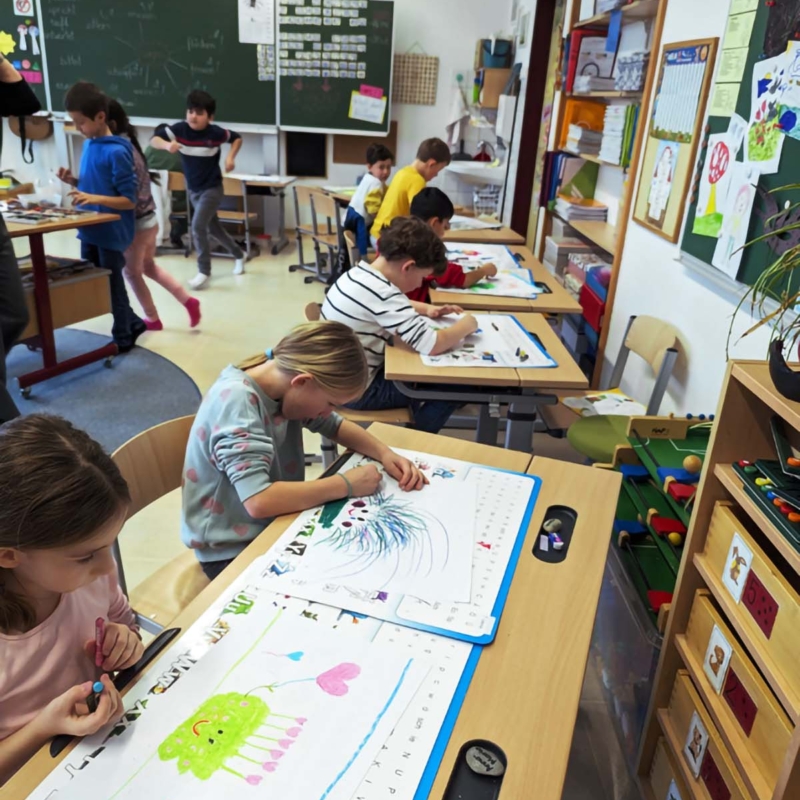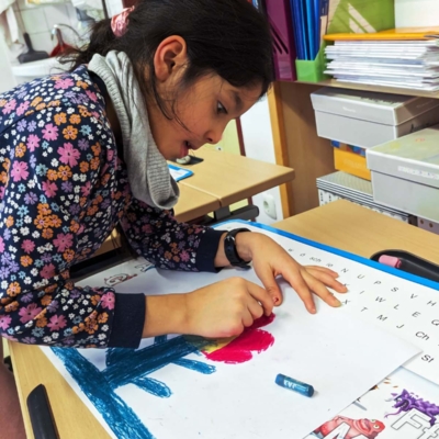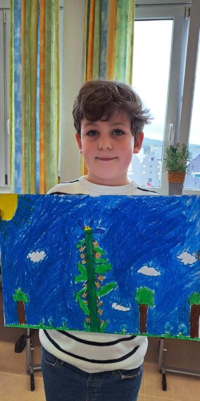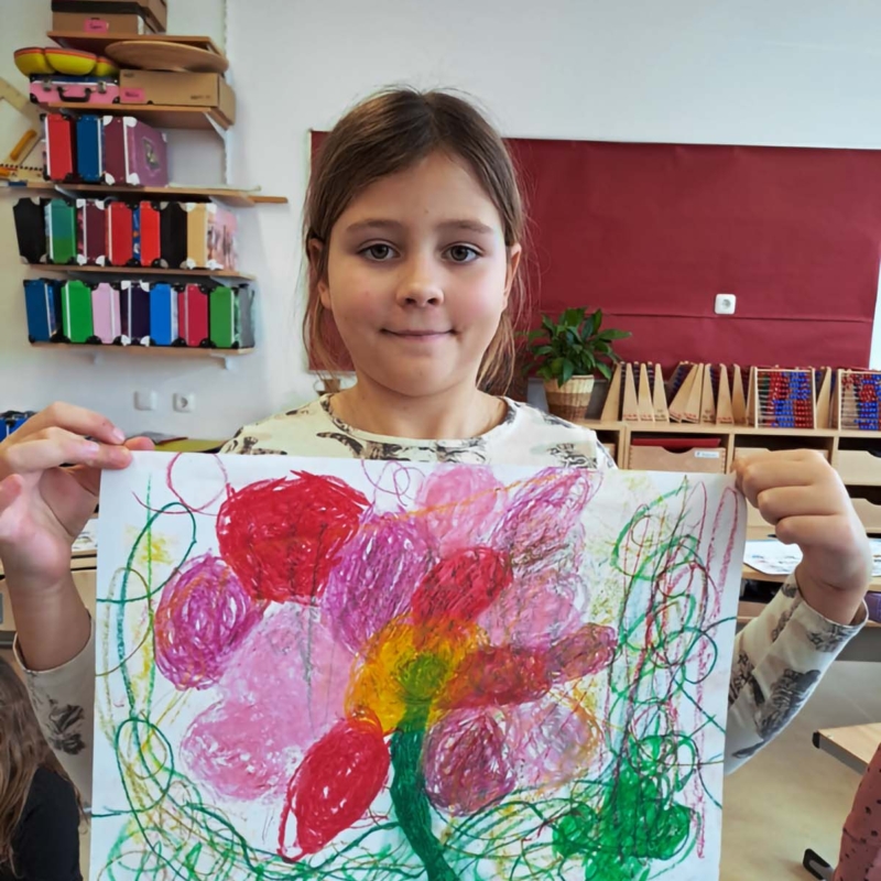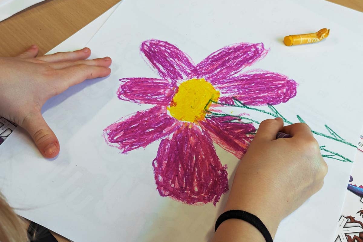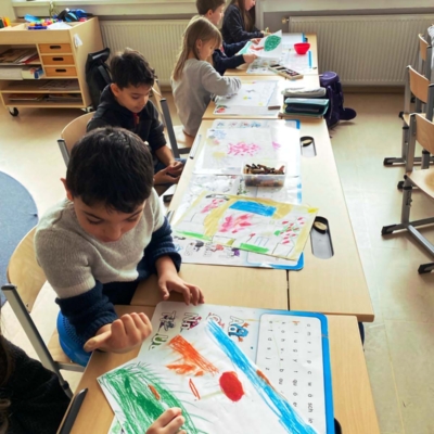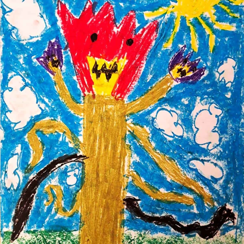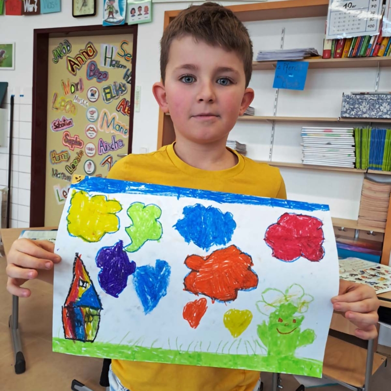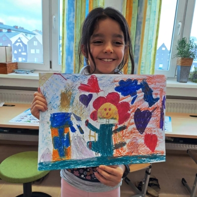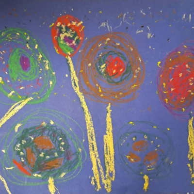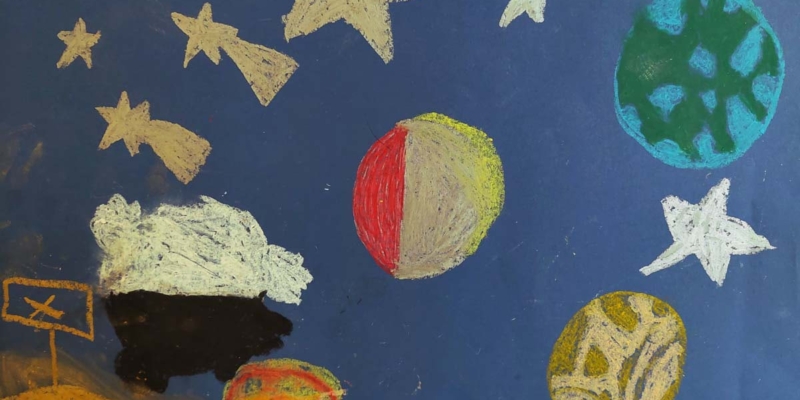 Wir befinden uns im „Reich der Fantasie“, als Grundhaltung in der Arbeit mit den Kindern. Sie ist wichtig bei der kunsttherapeutischen Themenfindung, alles ist möglich! Es gibt kein richtig oder falsch! Die eigenen Eindrücke werden anschließen mit leuchtenden Ölkreiden auf Papier festgehalten. Eindrucksvolle, kreative Bilder entstehen.